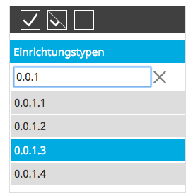 Über das Eingabefeld über der jeweiligen Liste können Sie ein Suchbegriff eingeben und so schneller z. B. ein Landkreis finden und diesen auswahlen.