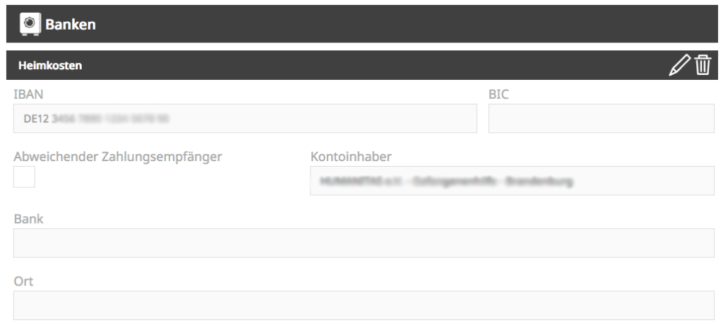 Hinterlegen Sie hier die Bankdaten der Einrichtung.
