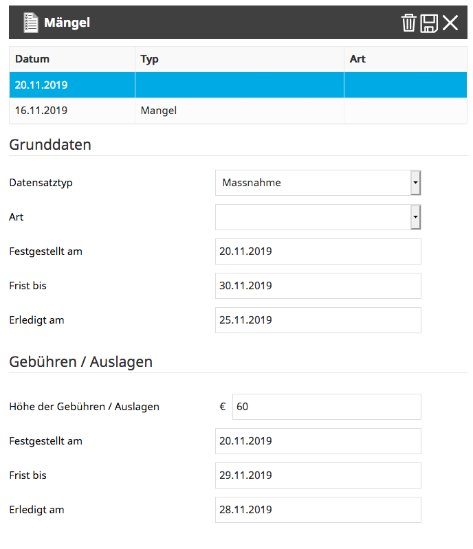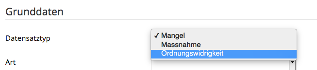 Sie haben hier mehrer Datensatztypen, die Sie dem zu hinterlegten Mängel zuweisen können.