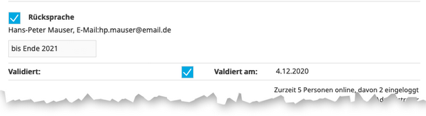 Den Stammdaten kann zusätzlich die Option der Rücksprache hinterlegt werden. Es werden die Daten des Benutzer hinterlegt, der die Rücksprache angeklickt hat.