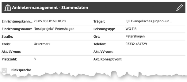 Es werden die Daten der Einrichtung angezeigt, wie Sie unter Einrichtung -> Stammdaten hinterlegt wurden.