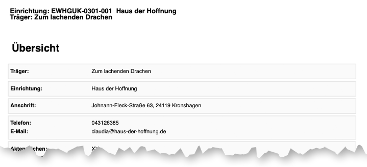 Sie haben die Möglichkeit den Übersichtsseite auszudrucken. Gehen Sie, um den Druck auszuführen, im Browser über Daten -> Drucken bzw. drücke Sie STRG + P.